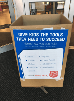 The sign, which was actually affixed to a donation drive collection box, is not a bad idea. Schools are underfunded and badly need supplies. The problem is it’s wrong.